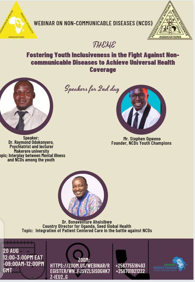 On the 20th of August 2021, Ogweno Stephen delivered a keynote speech under the theme of “Fostering Youth inclusiveness in the fight against non-Communicable (NCDs) diseases to achieve Universal Health Coverage.” In the online conference webinar organized by FAMSA medical students’ association. In this webinar, Ogweno talked on the state of NCDs in the continent and what we the youth could do in a bid to raise awareness and improve action on NCDs. In this keynote Ogweno insisted on the role of youth where he insisted that as the young people our role is not only to be participants in the conversations that take place in the NCDs space, rather, we as young people need to be key players in the space either as innovators, educators and policy leaders and advocates. Young people need to to take action in the NCDs space and make action on NCDs a priority.