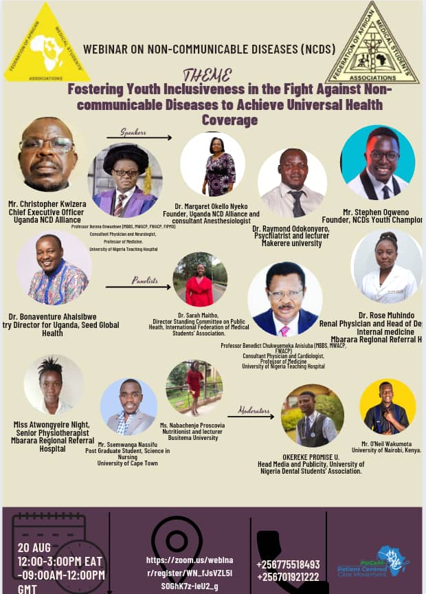During the webinar which was held on Zoom between 20th and 21st August, 2021 lasting 3 hours each day, almost 150 students participated in the sessions. The conference hosted a number of speakers from different countries in Africa, whom each had different topics of discussion but all under the NCDs thematic areas. The biggest key takeaway from the event was that the key to changing the whole community always begins with you!