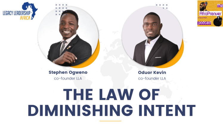 Ogweno Stephen, the co-founder of Legacy Leadership Africa, has recently been involved in a joint audio and video podcast series with Kevin Oduor. The series focuses on various entrepreneurial topics, with the first podcast titled “The Resolution Hacker” and the second titled “The Law of Diminishing Intent”.