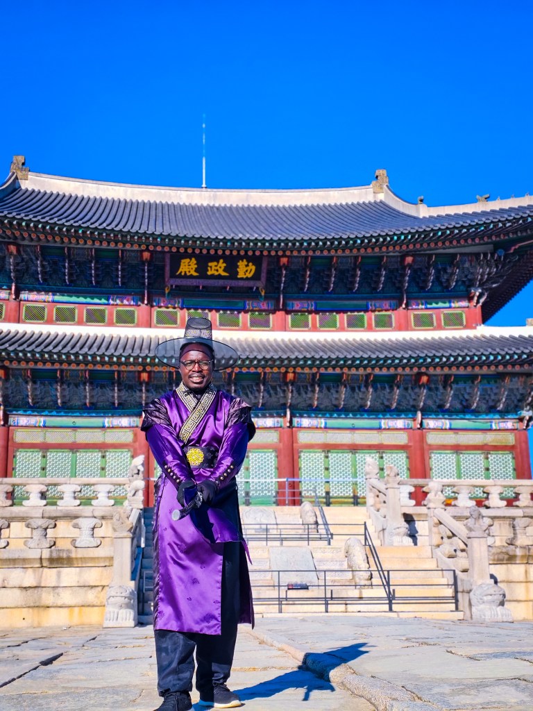 It was a freezing December weekend, and the temperatures had plummeted to -8°C. Coming from Kenya, where warm weather reigns supreme, I found myself unprepared for the relentless chill. The day before, I had explored the bustling shopping streets of Insadong, battling the cold and nursing the beginnings of a sore throat. I planned to rest the following day, but curiosity got the better of me. A quick Google search revealed something incredible—an opportunity to rent traditional hanbok, including samurai attire, and explore Korea’s iconic Gyeongbokgung Palace in full costume.
